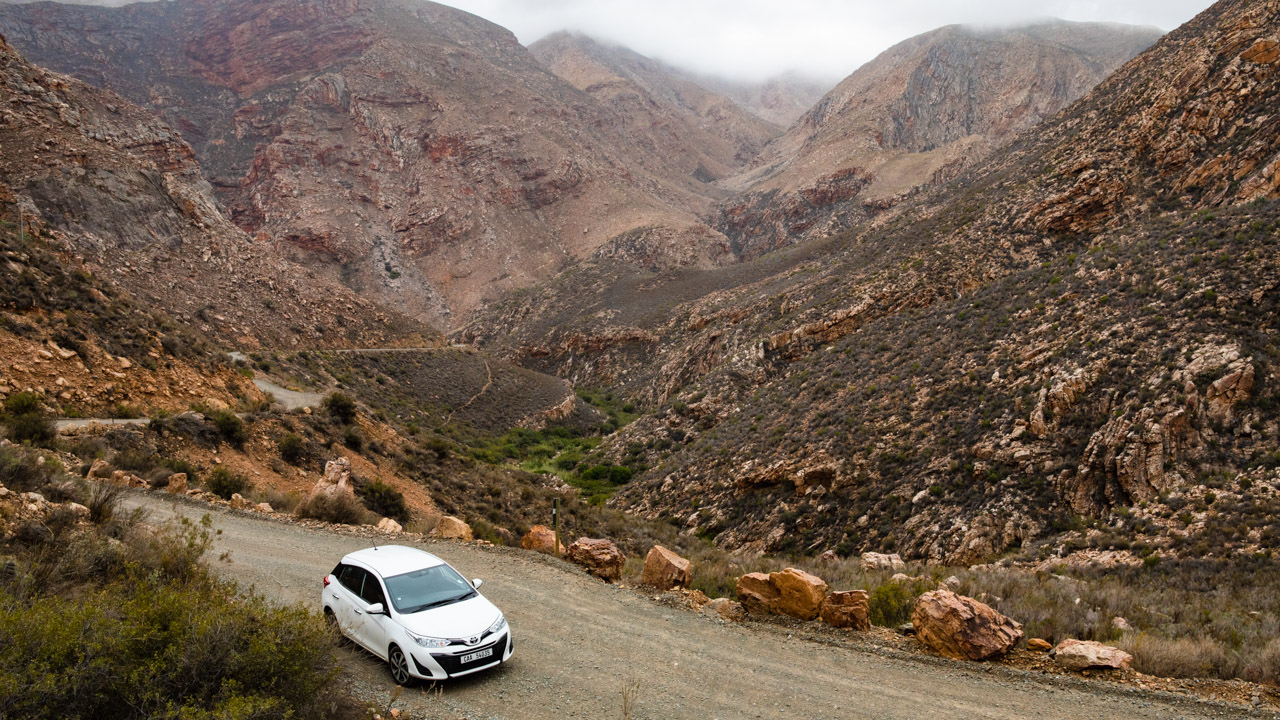 Swartberg Pass norr om Oudtshoorn är ett fantastiskt bergspass som du bör lägga flera timmar på att köra igenom. Det är inte alltid öppet för trafik, så kolla vädret några dagar innan du planerar att ta dig dit, eller ring turistbyrån. Regnar det kan de stänga passet.