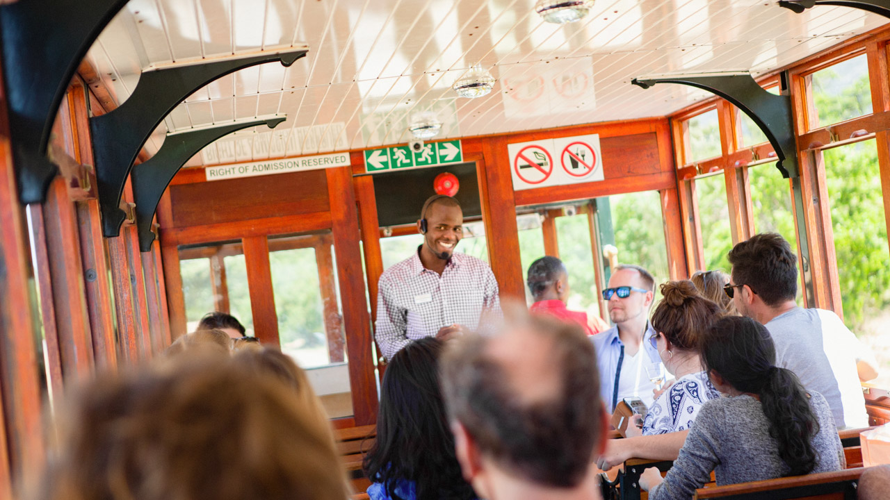 Låt bilen stå och hoppa på Franschhoek Wine Tram. Under en heldag får du åka från vingård till vingård, ett roligt sätt att ta sig runt. En provning på en vingård kostar från 20 till 200 svenska kronor och kvaliteten kan variera. Biljetterna har vi bokat till dig i förväg, och vi tipsar om vilka vingårdar som är bra lunchställen – kom ihåg att boka i god tid, för att vara garanterad plats.